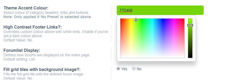 On the row below, set "Theme Accent Colour" to a colour of your choice, or enter a hexadecimal colour value: