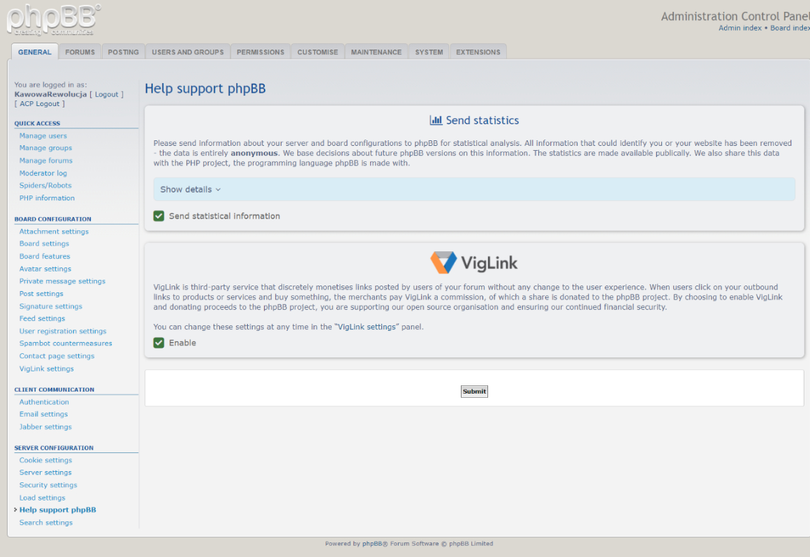 Navigate to ACP (Admin Control Panel) β "General" (tab)